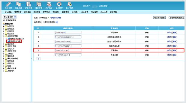 • 首先獲取在線客服安裝代碼,登陸帝國cms后臺,進(jìn)入模板管理》公共模板變量》管理模板變量, 找到footer模板,點擊“修改”,將在線客服代碼復(fù)制粘貼到編輯框中的合適位置,然后點擊提交。